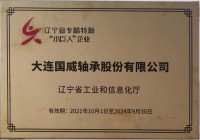 2021年10月1日,大連國威軸承股份有限公司獲得省級‘’專精特新小巨人‘’榮譽(yù)稱號。
